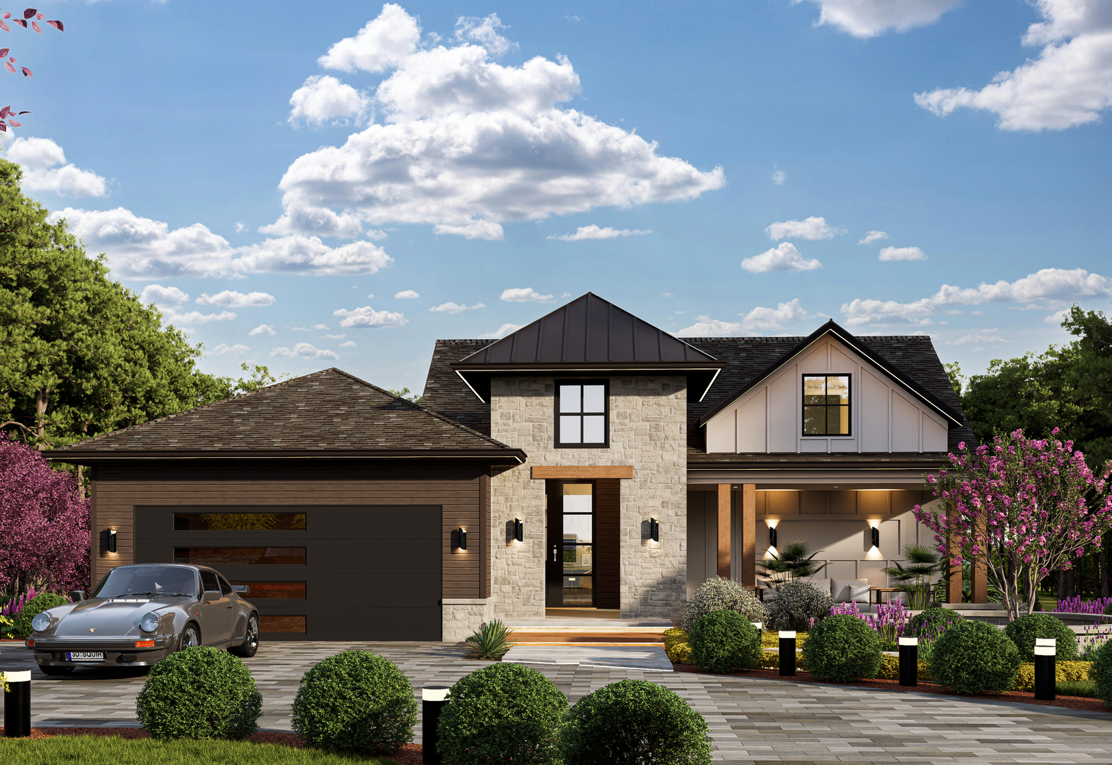 Luxury Landscaping: Vibrant flowers, shrubs, and trees creating a serene retreat-like atmosphere.